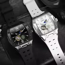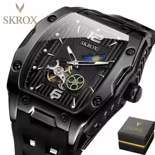 SKROX Designer Luxury Moon Phase Toubillon Automatic Movement Mechanical Clock High Quality Waterproof Silicone Men’s Watches